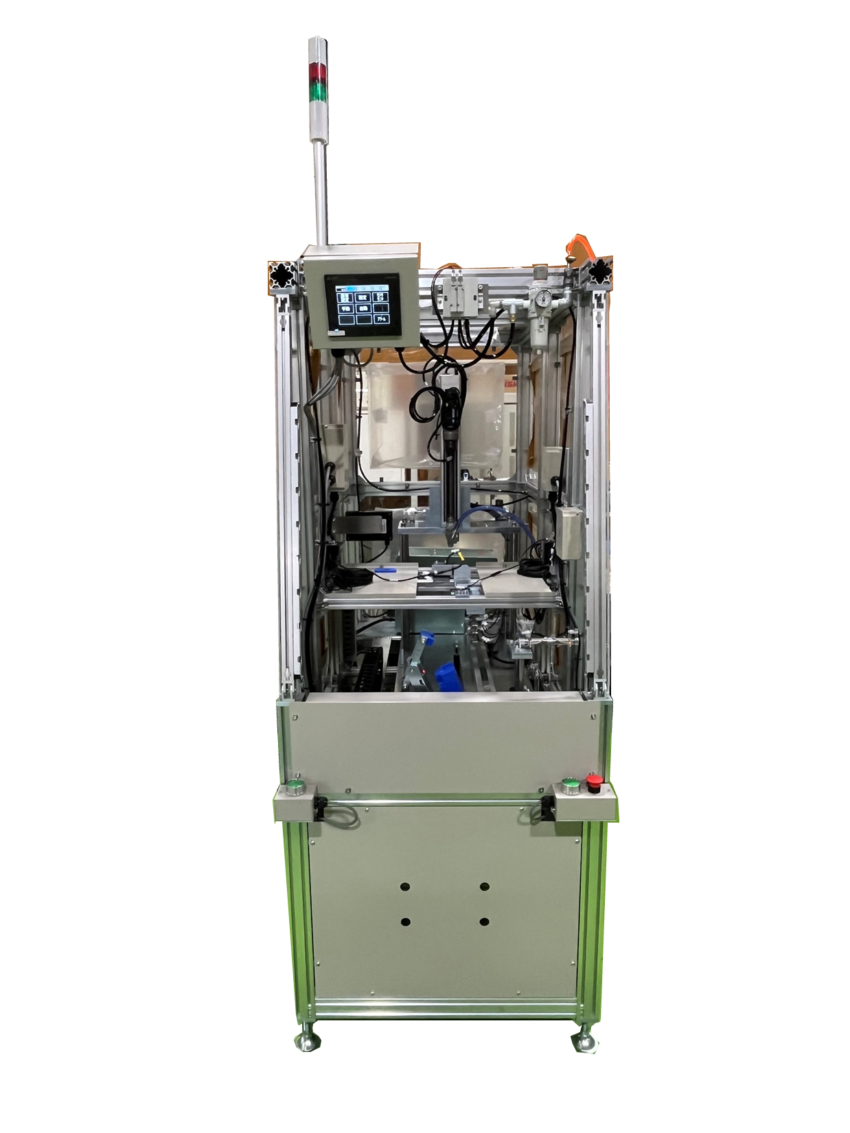 ホーム 一覧 ネジ締め装置 ネジ締め装置 処理工程 step1 作業者がワークセット step2 ながら起動SWで起動 step3 ワーク引き込み step4 ネジ締め開始(トルク異常、ネジ浮きも判別可能) step5 ネジ締め完了後に排出 特長 ワークセットするだけでネジ締めは自動で起動 脱着、操作も簡単で生産性向上 治具交換で多品種にも対応可能 脱着を自動で行うことも可能